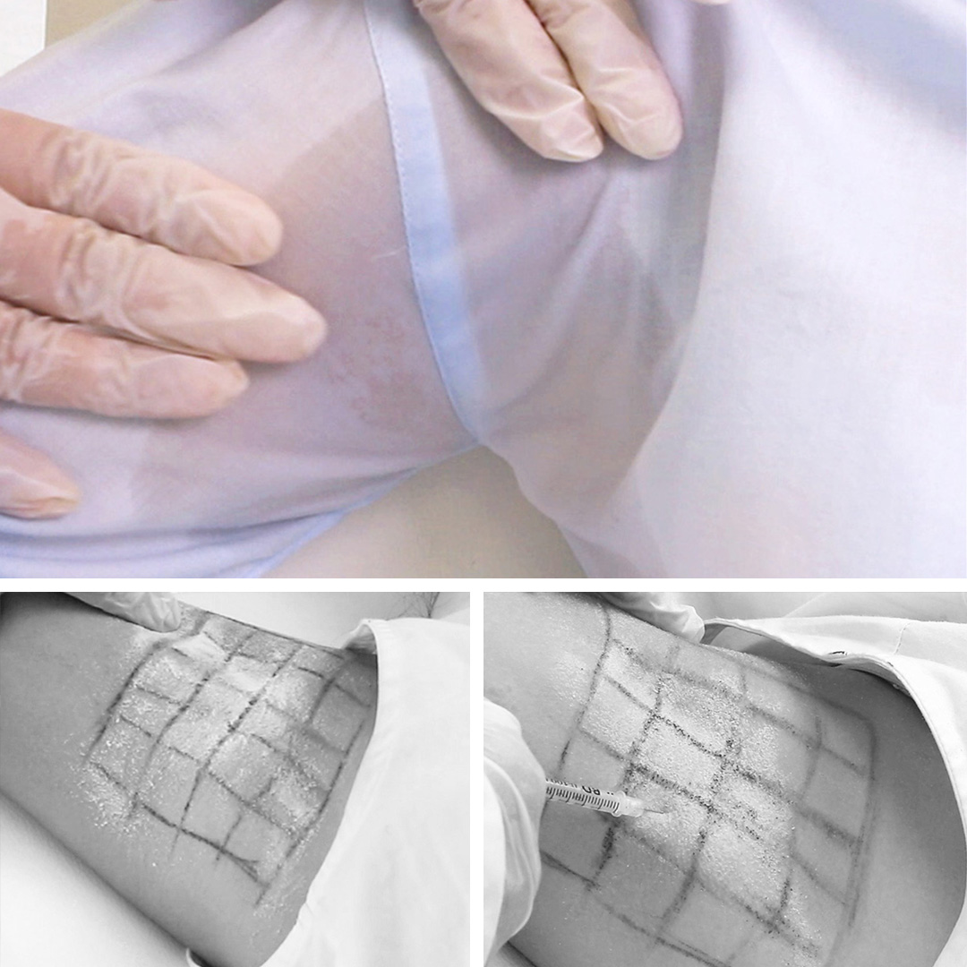 Antes de la realización, los doctores realizan una comprobación de las partes de la axila que segregan más sudor.